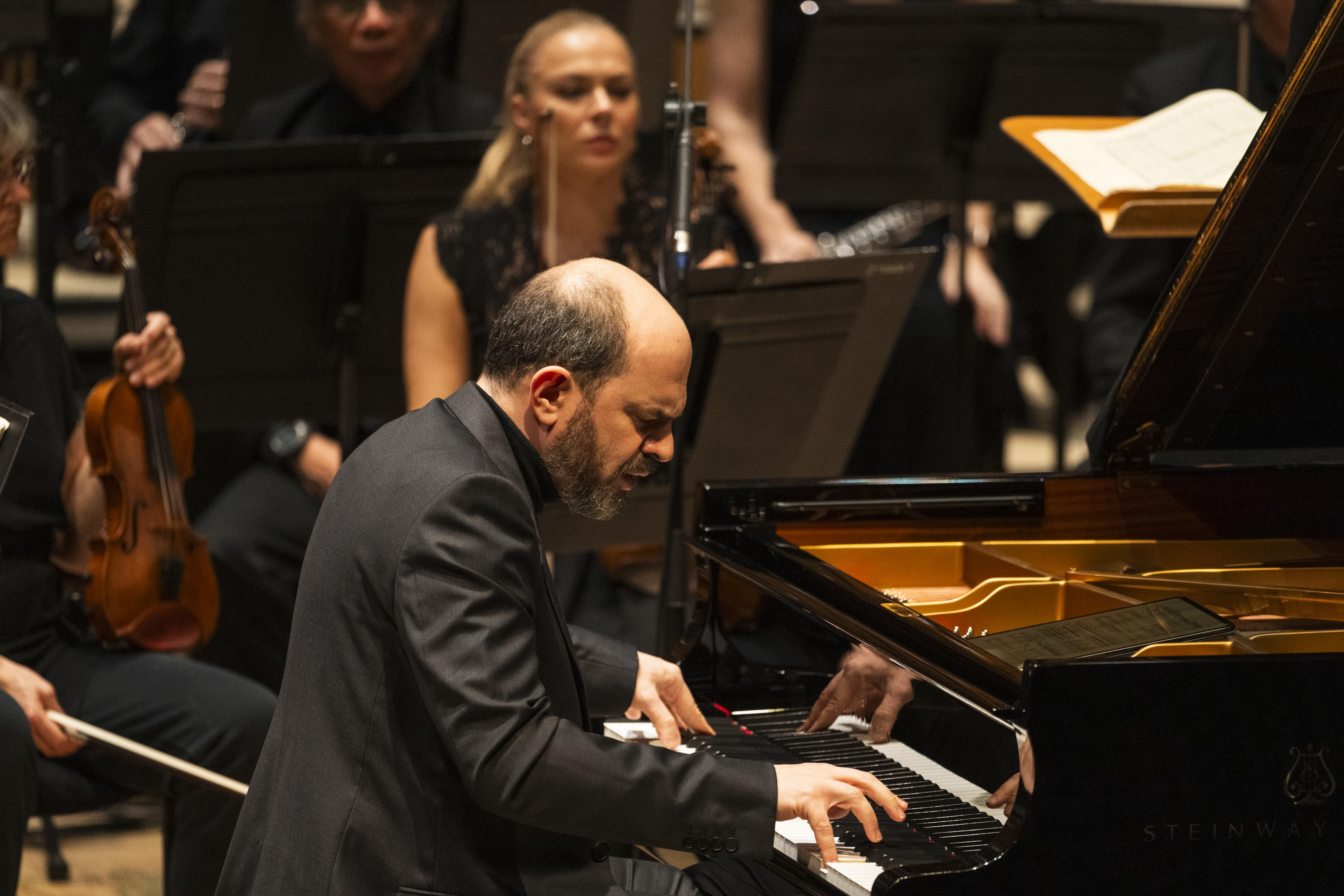 In the event the Grieg received a responsive reading from Lukas Sternath (below, with Oramo), the Viennese pianist who, still in his mid-20s, was most at home in more inward passages. The second theme of the initial Allegro was enticingly taken up after a heartfelt rendering by cellos, as was the Adagio’s eloquent melody and that first emerging in the finale on flute, where it was soulfully rendered by Daniel Pailthorpe. Nor were the more demonstrative aspects underplayed – Sternath having the measure of a cadenza whose mounting rhetoric was pointedly reined-in, while the finale’s outer sections were incisively inflected prior to an apotheosis which felt the more exhilarating through its absence of bathos. A melting take on Richard Strauss’ early song Morgen!, transcribed with enviable poise by Max Reger, served to reinforce Sternath’s formidable pianistic credentials.