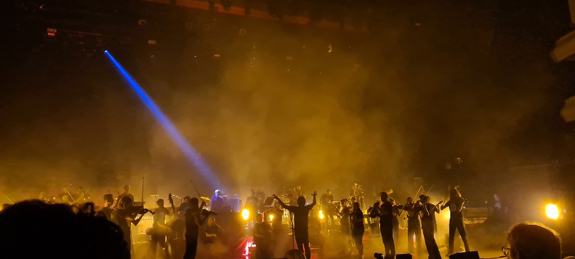 At the end Eno and Järvi generously credited the band and orchestral musicians, looking beyond to single out those responsible for monitoring and lighting, two crucial overlooked b but crucial elements of any performance. The lighting was wholly suitable, the relative darkness allowing the audience to use their mind’s eye in response to Eno’s resolute constructions. Thus was a memorable evening, and one in which the main man himself was also deeply moved.