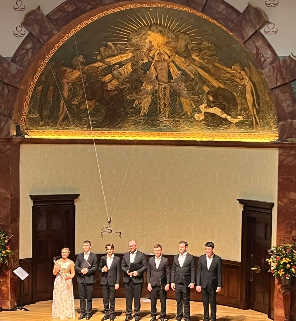 Other pieces sung a cappella included Hildegard of Bingen’s O gloriosissimi (from the back of the hall) and beautiful performances of Owain Park’s own Sommernacht and Joseph Rheinberger’s Abendlied.